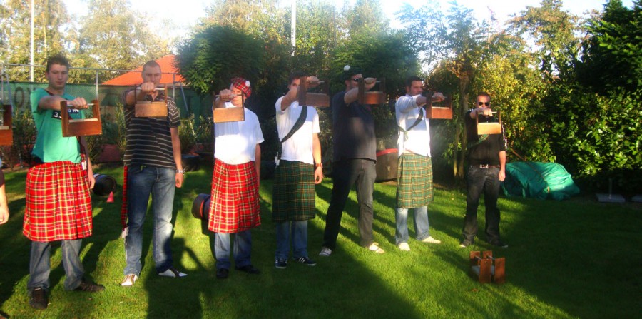 Voor we de oermens in je loslaten, krijgen jij en je team een uitgebreid speluitleg en worden jullie in originele schotse kledij gehesen, wat de nodige hilariteit oplevert.