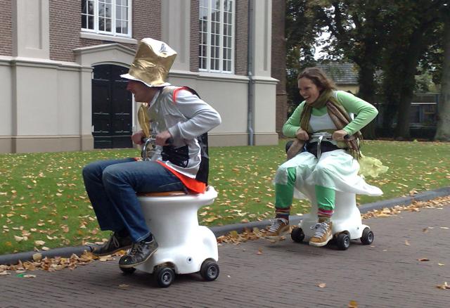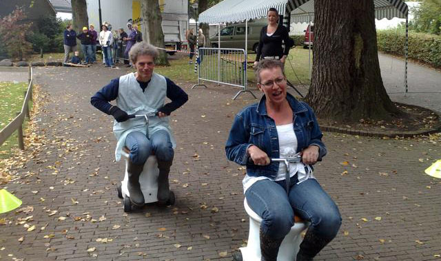 Directieleden, leraren, politieagenten, ministers, secretaresses maar natuurlijk ook kinderen (vanaf 12 jaar) kunnen allemaal de pot op! Bijna iedereen kan rijden op de Toilet racers. Maar niet alleen het racen op deze toiletpotten is geweldig, ook voor de toeschouwers is het buitengewoon vermakelijk om naar te kijken. Aandacht en succes verzekerd wanneer u de Toilet racers huurt voor bijvoorbeeld een evenement, een examenstunt, een schoolfeest, een bedrijfsfeest of een opening.